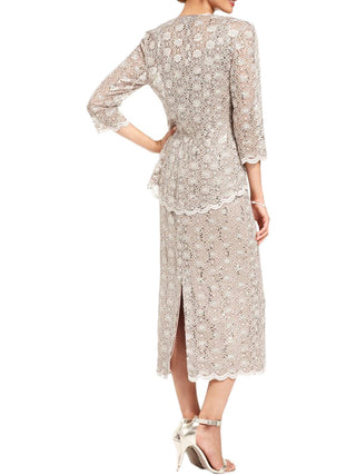 R&M Richards Women's Sequined Sleeveless Scoop Neck Tea Length Shift Dress Brown Size 18