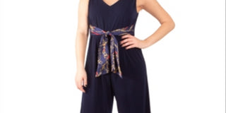 NY Collection Women's Printed Tie Belt Jumpsuit Blue Size Petite X-Large