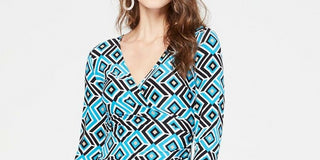 INC International Concepts Women's Turquoise Slitted Patterned 3/4 Sleeve V Neck Above the Knee Evening Sheath Dress Petites Black Size Petite Small