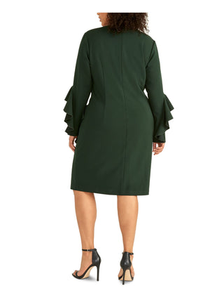 Rachel Roy Women's Bell Sleeve Knee Length Sheath Cocktail Dress Green Size 16W