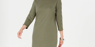 Karen Scott Women's Petite Boat-Neck Studded Dress Green Size PS
