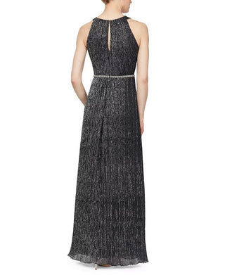 SL Fashions Women's Metallic Bead Maxi Dress Silver Size 6