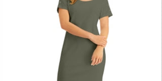 Karen Scott Women's Cotton Button Shoulder Dress Green Size -2XL