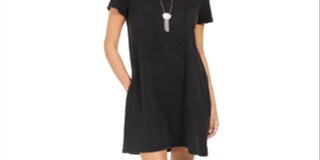 Style & Co Women's Cotton T-Shirt Dress Black Size Petite X-Small