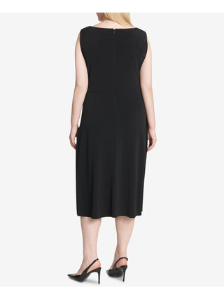Jessica Howard Women's Embroidered Sequined Sleeveless Jewel Neck Below the Knee Sheath Formal Dress Black Size 14W