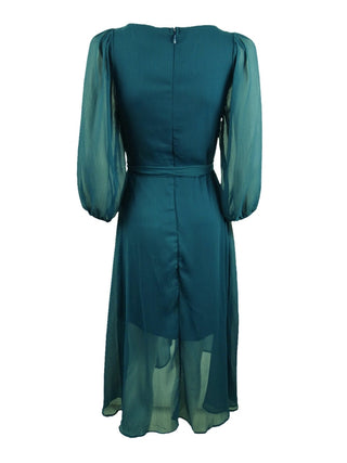 INC International Concepts Women's Printed Faux Wrap Dress Green Size Petite P