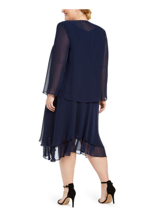 SL Fashions Women's Plus 2PC Embellished Shift Dress Blue Size 14W