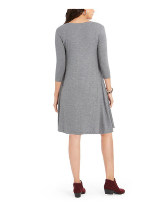 Style & Co Women's 3/4 Sleeve V Neck Above the Knee Fit Flare Dress Gray Size Petite Small
