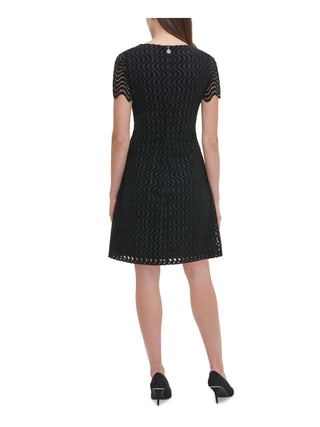 Tommy Hilfiger Women's Eyelet Zippered Short Sleeve Jewel Neck Above the Knee Sheath Dress Black Size 16