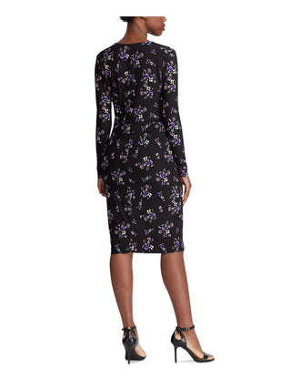 Ralph Lauren Women's Floral Long Sleeve V Neck Knee Length Wrap Dress Black Size 10