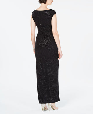 Jessica Howard Women's Metallic Floral Draped Gown Black Size 14