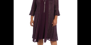 Calvin Klein Women's Zippered Bell Sleeve Off Shoulder Full-Length Fit Flare Formal Dress Purple Size 8