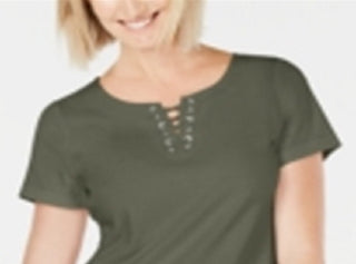 Karen Scott Women's Cotton Lace up Split Neck Dress Green Size Small