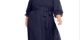 Ny Collection Women's Plus Size Button-Front Dress Blue Size 3X