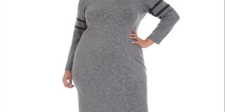 NY Collection Women's Plus Sweaterdress MIDI Striped - Eyvia Gray Size 1X