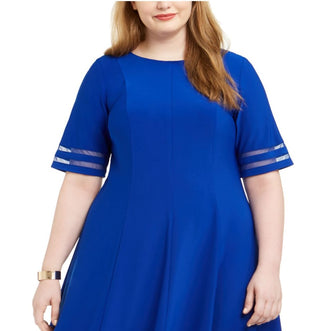 Jessica Howard Women's Plus Illusion-Detail Fit & Flare Dress Blue Size 18W