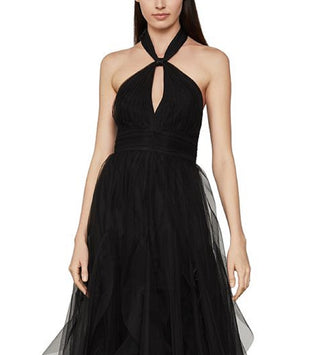 BCBGMAXAZRIA Women's Tulle Halter-Neck Dress Black Size 12