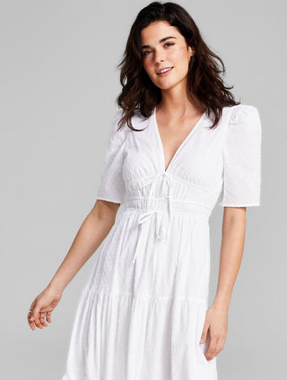 And Now This Women's Clip Dot V Neck Cotton Maxi Dress White Size X-Large
