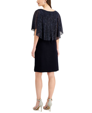 Connected Women's Metallic Threaded Cape Dress Blue Size 12Petite