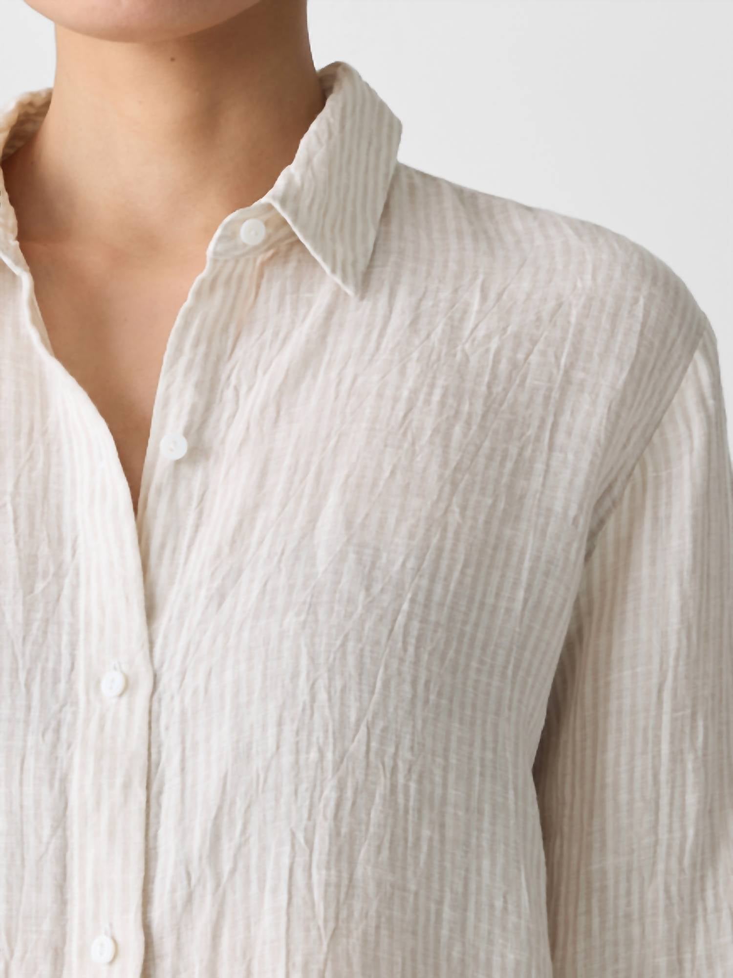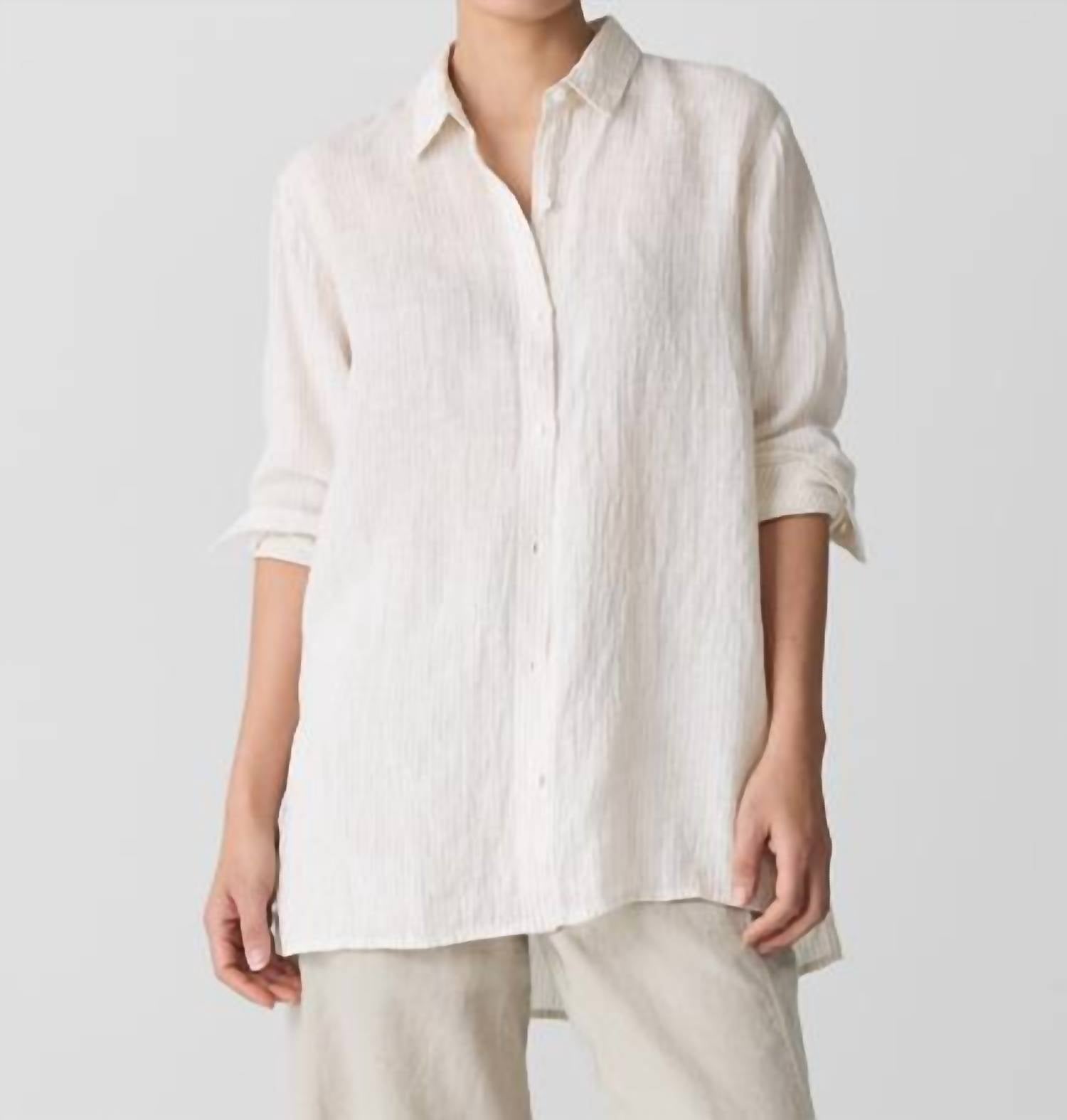 Eileen Fisher - Puckered Linen Stripe Classic Collar Shirt
