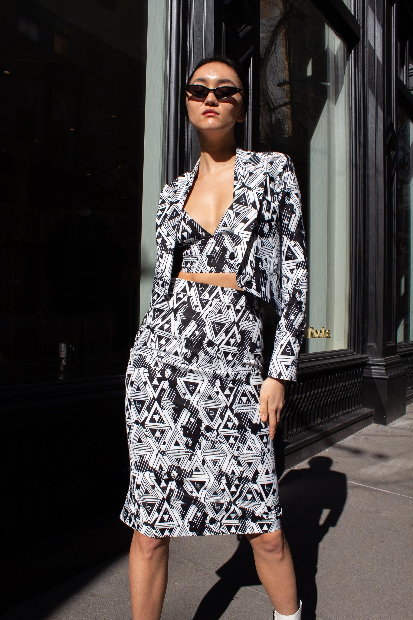 Amour Geometric Pencil Skirt – Stylish Women’s Fitted Skirt