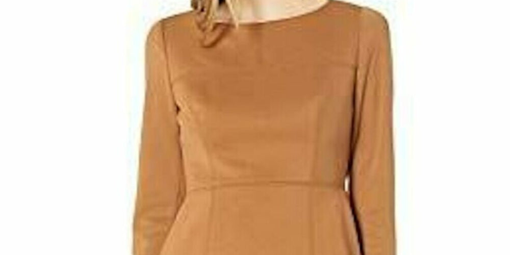Anne Klein Women's Long Sleeve Short Sheath Dress Brown Size 12