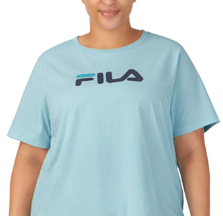 Fila Women's Thea Cotton Logo Short Sleeve T-Shirt Blue Size 1X