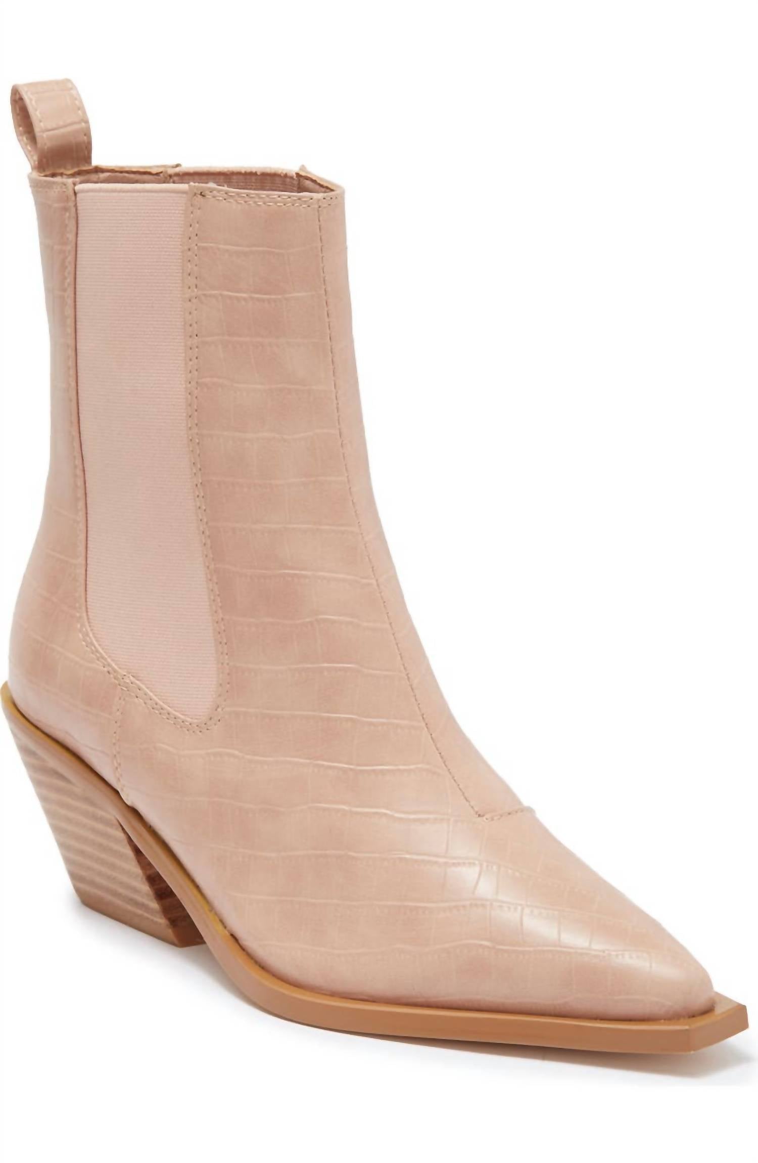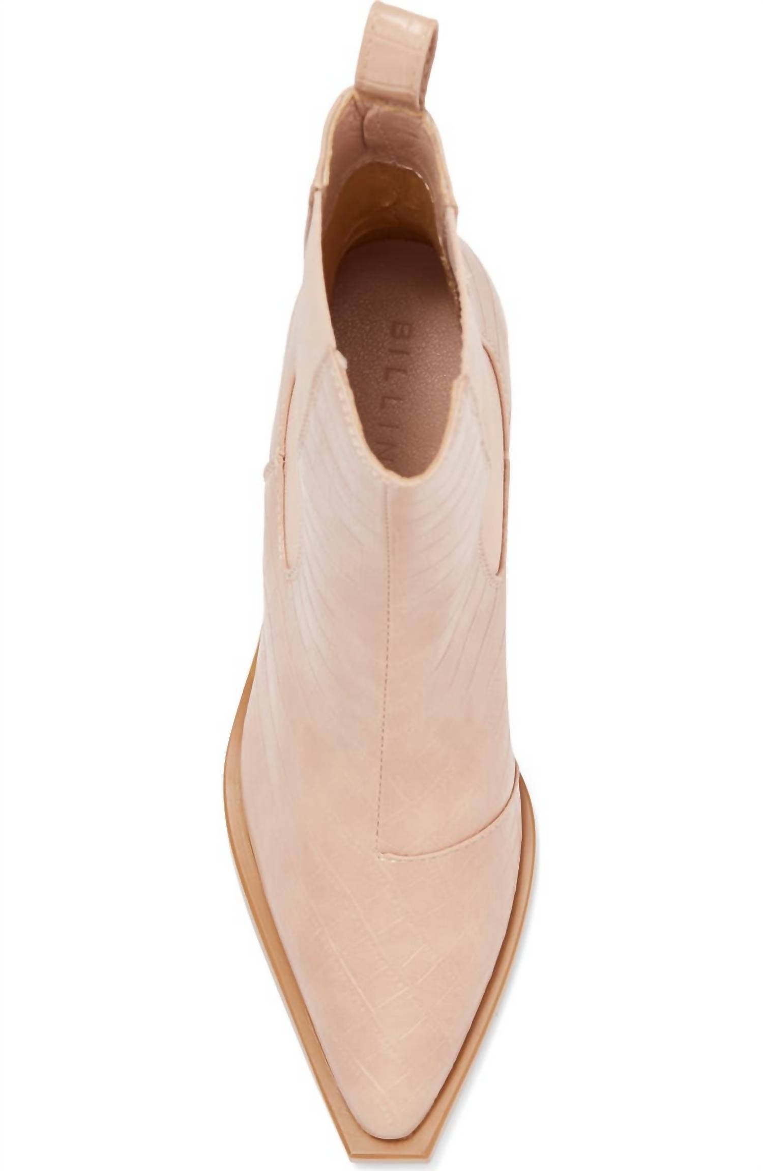 Elevate your style with the Ukaya Boots by BiLLiNi, featuring a chic pointed toe and crafted from rose clay croc-embossed faux leather. This women's Chelsea boot showcases dual inset elastic gores for a comfortable fit and a stacked block heel measuring 2.75 inches. Made for the modern adult, these heeled boots perfectly blend fashion and function with their synthetic upper, lining, and sole.