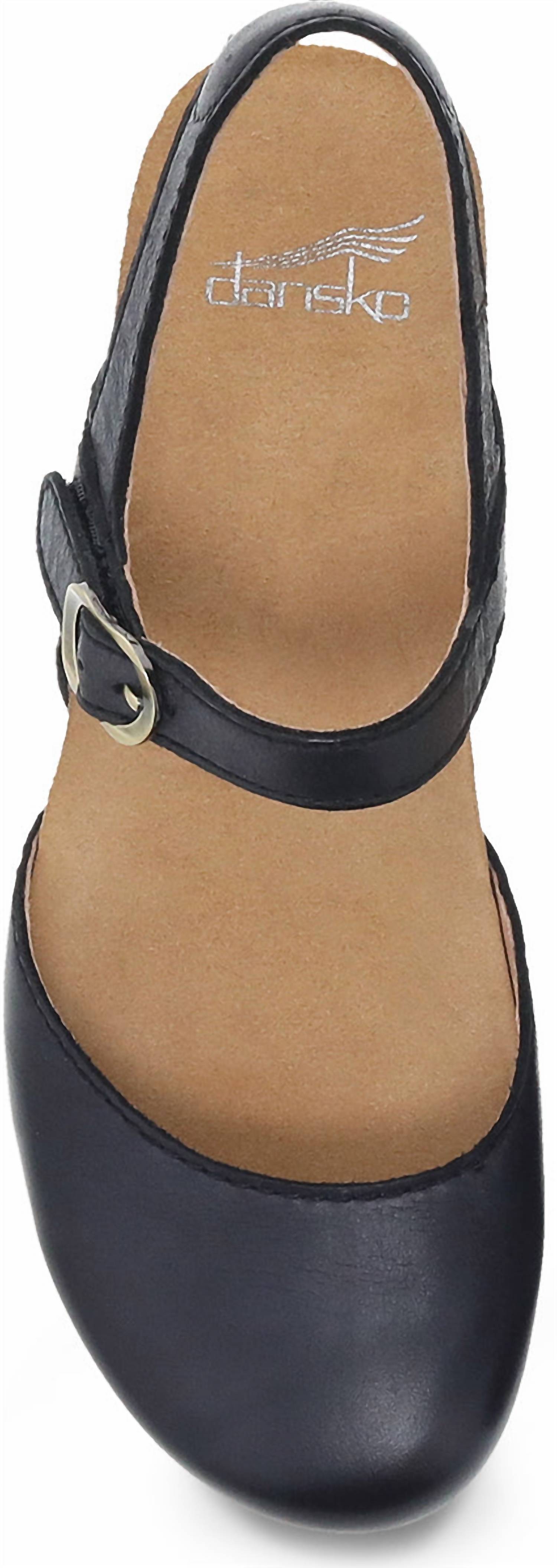 Classicly cute and all-day-wearable. We love this sandal. Step into spring with the Women's Tiffani Wedge Sandals by Dansko, a stylish choice for the season. These sandals feature burnished leather uppers and leather linings for all-day comfort. They are designed with a closed round toe and an open back, complemented by an adjustable sleek ankle strap with a concealed hook and loop closure. With a mid-height 2.25-inch wedge heel and a 1-inch platform, the Tiffani sandals offer a cushioned PU footbed and a lightweight, shock-absorbing PU midsole for lasting comfort and support. For care, wipe with a soft, dry cloth.