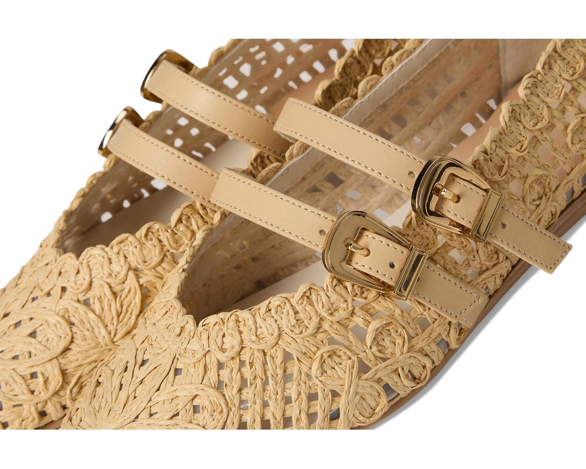 A preppy yet feminine take on the classic loafer. Meet the Women's Baylee Sunflower Flats by Dolce Vita, a chic addition for any wardrobe. These stylish flats feature a woven raffia and leather upper in a natural hue, complemented by a comfortable textile lining and recycled synthetic outsole. Designed with a classic round toe and trendy double buckle styling, they offer flat heel support perfect for all-day wear. Ideal for minimalist summer looks, these flats effortlessly transition from vacation outings to Easter celebrations.