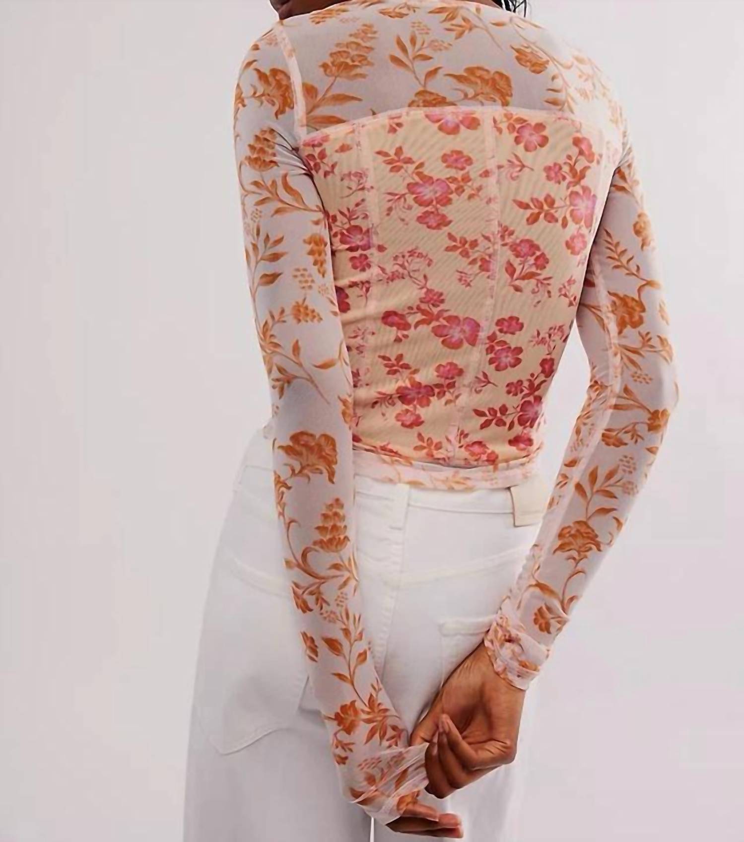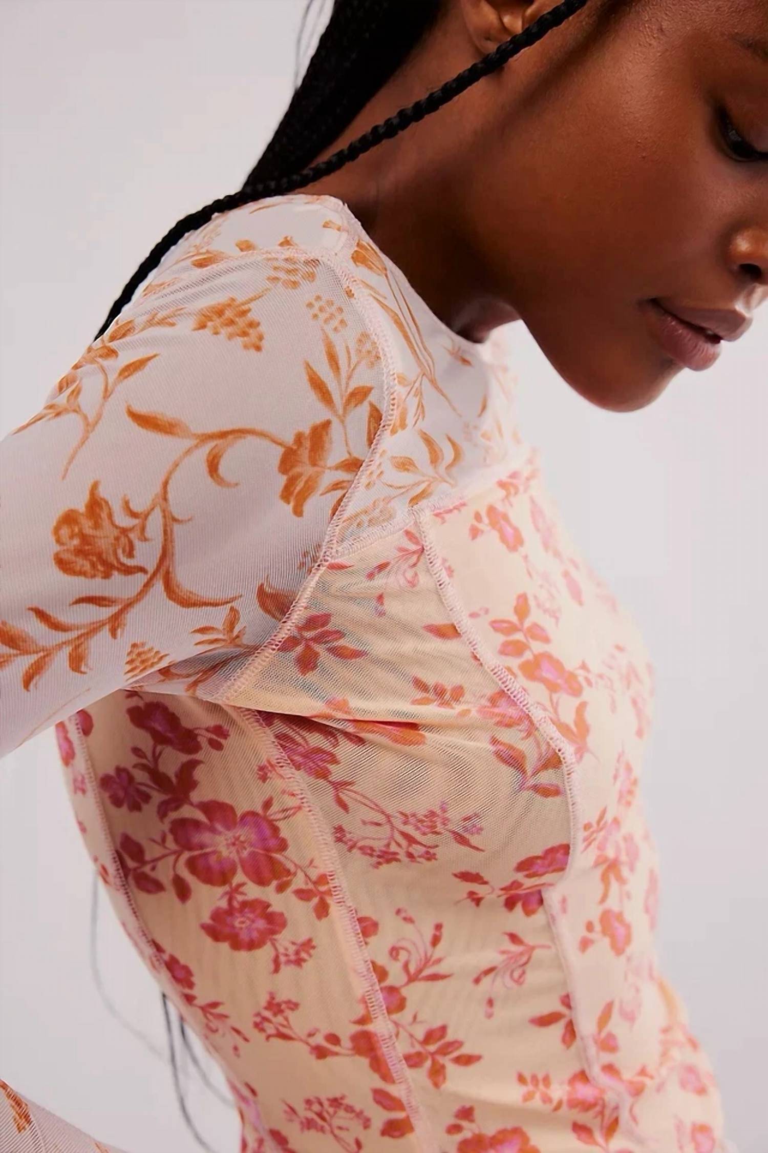 Great fit, cute design, soft fabric. You'll love everything about this long sleeve tee. Introducing the Betty's Garden Top by Free People, a vibrant piece perfect for any wardrobe. This coral combo tee features long sleeves and a crewneck design, ensuring both comfort and style. Crafted from a nylon blend, this top offers a delicate floral pattern that is effortlessly chic. With a convenient pull-on closure, it adds ease to your everyday wear.