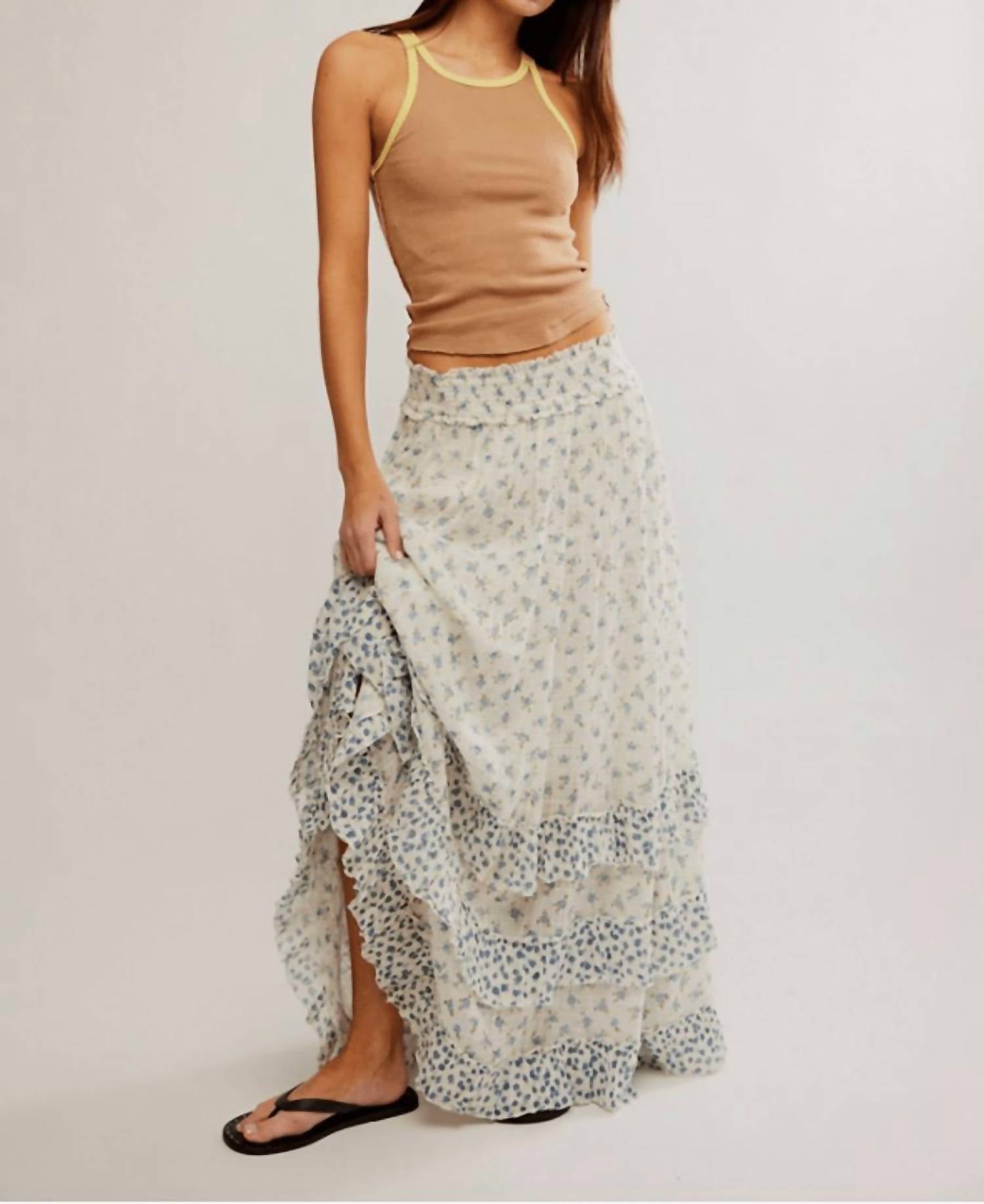 Tuck in your favorite tee for a more casual yet feminine look. Discover the Brynn Printed Maxi Skirt by Free People, a captivating choice in Ivory Combo with its vibrant floral pattern and flowy silhouette. Perfect for a boho chic look, this pull-on skirt embodies elegance and ease, ideal for vacations or Thanksgiving gatherings. Made for comfort, it promises a relaxed fit without any pockets to interrupt its sleek design. Care instructions include hand washing and laying flat to dry, ensuring longevity and beauty.