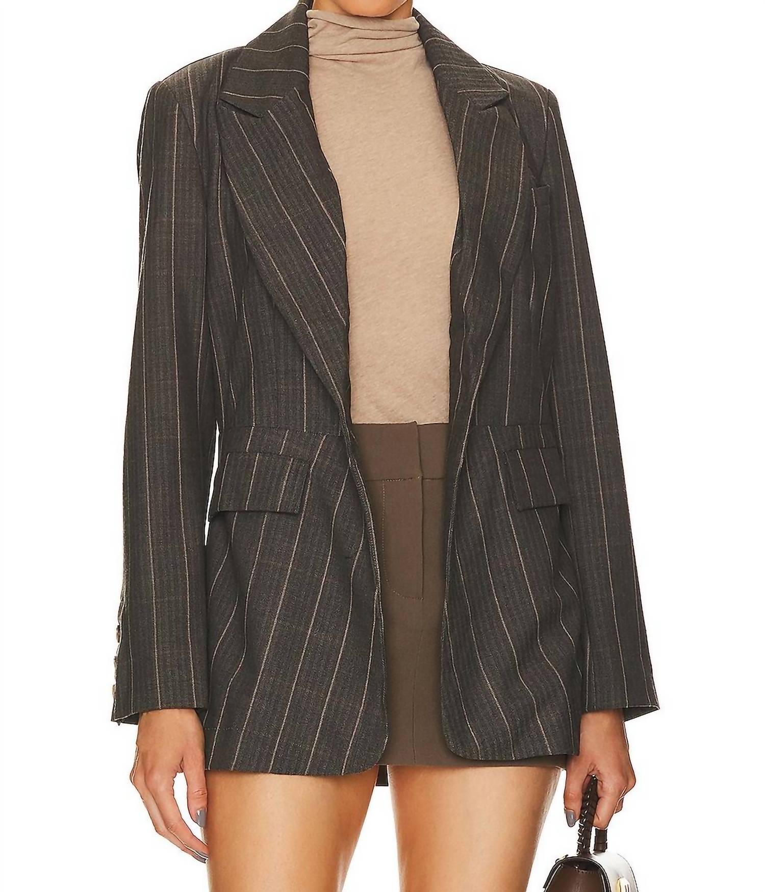 An elevated version of your favorite classic blazer. Offering a relaxed and slouchy fit. This blazer features long sleeves and a classic shawl collar, constructed from a blend of 66% polyester, 30% viscose, and 4% elastane, with a 100% viscose lining. Crafted with precision in Vietnam, it includes a button closure at the front and button cuffs, complemented by side flap pockets and padded shoulders. Designed with a garment length of 30 inches, it requires dry cleaning only.