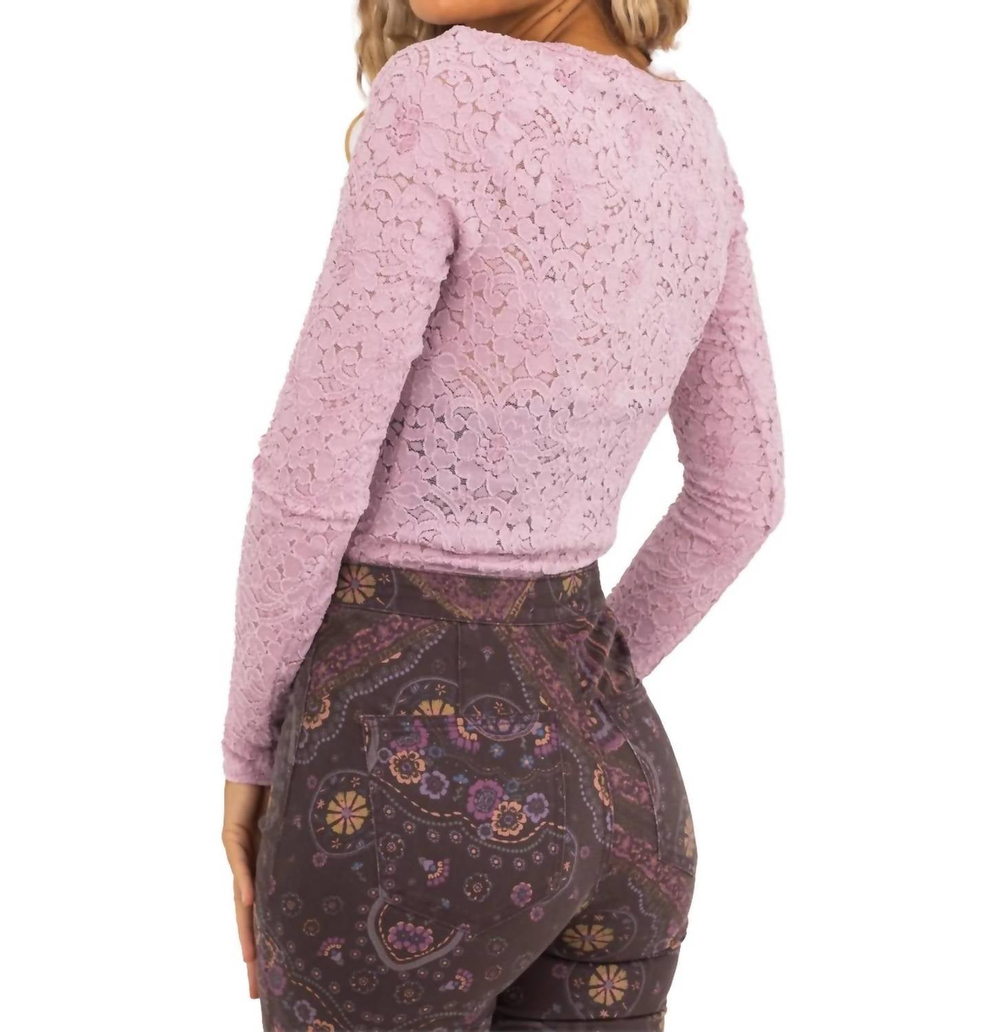 The perfect long sleeve tee that goes with just about anything. Charming Bleached Mauve long sleeve tee. Features a floral pattern and a notched scoop neckline. Made from polyester. Offers a relaxed fit with slim-fitting sleeves, perfect for layering or wearing solo. Care is a breeze with machine wash and tumble dry instructions.