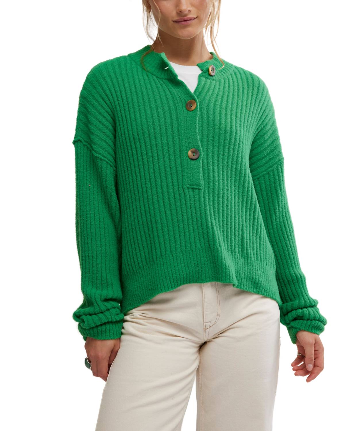 Experience the perfect blend of comfort and style with this trendy crew neck sweater, designed to effortlessly elevate your wardrobe. Pair it with your favorite denim and loafers for the perfect look. Introducing the Free People Cocoa Henley Pullover, a chic addition to your wardrobe crafted with long sleeves for those cooler days. Made with a unique Rolling Hills Knit textile, this piece stands out with its textured pattern and ribbed trim details. It offers a versatile crewneck design and is finished with a partial front button closure, adding a touch of elegance. Care for this imported garment with a hand wash as recommended to maintain its quality and fit.