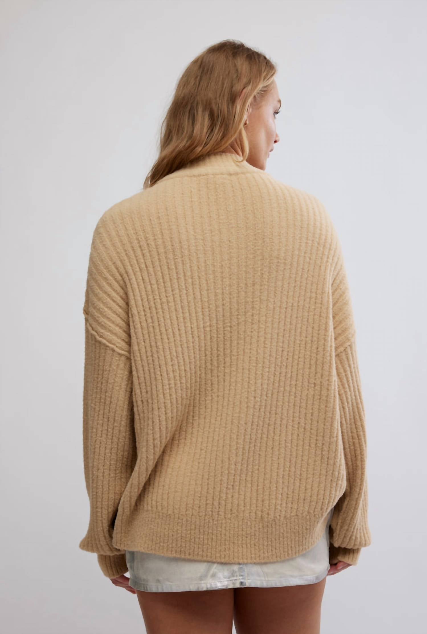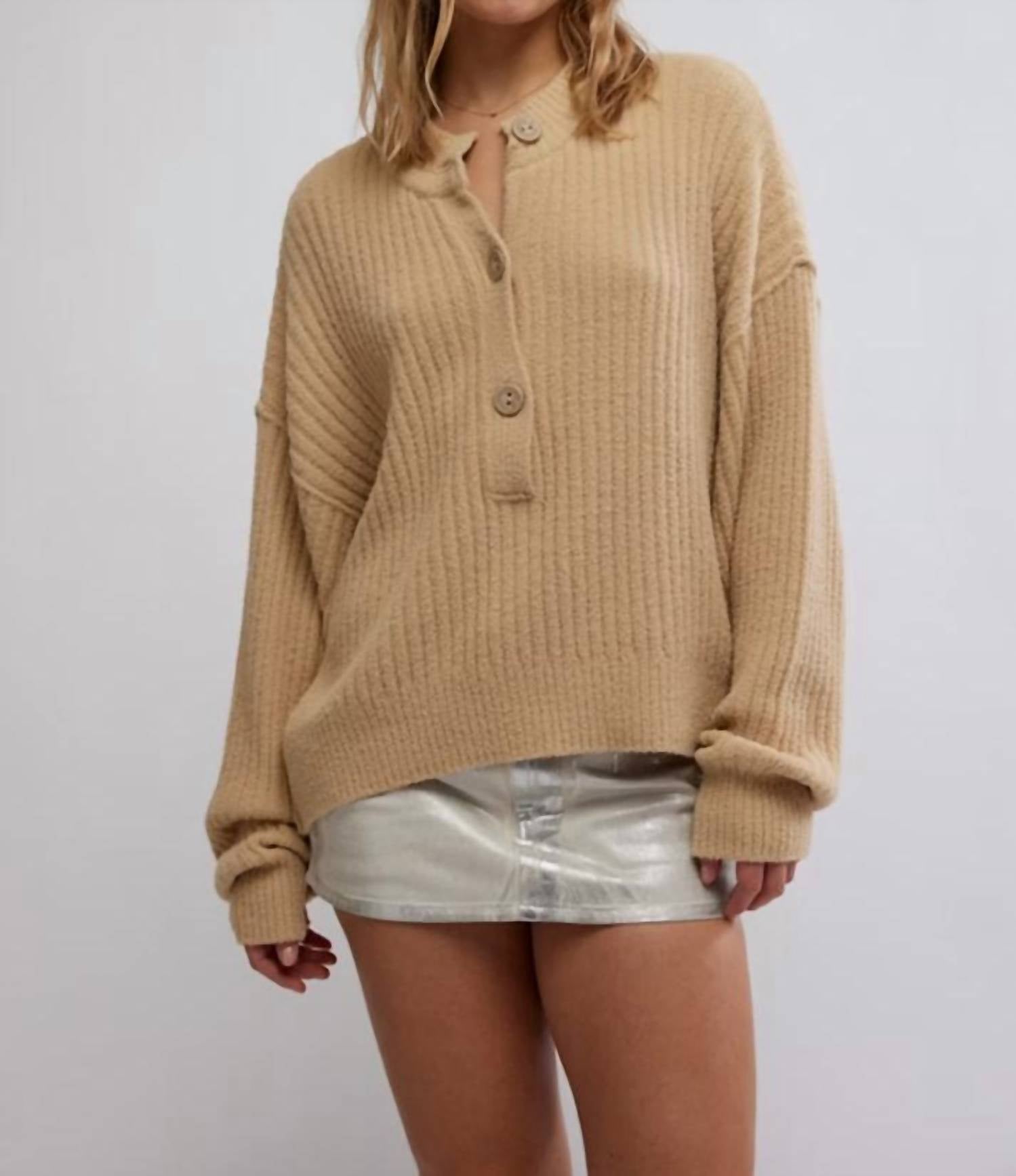 A classic fit that works just as good buttoned as it does left open. Elevate your wardrobe with the Cocoa Henley Top by Free People, a textured knit piece perfect for cozy days. This Sugar Cookie-colored top features long sleeves and a flattering crewneck design. Crafted from a medium ribbed knit in Cambodia, it includes a partial button closure at the front for understated elegance. Maintain its quality with hand washing as recommended.