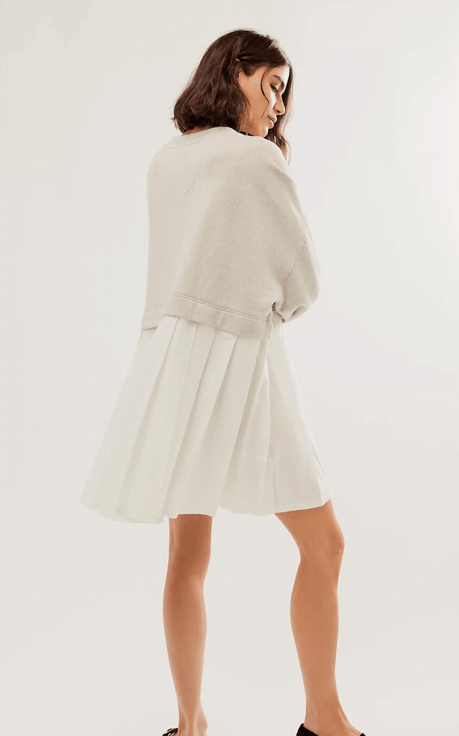 Cozy fabric, impeccable design - Meet the sweatshirt that you'll never want to take off. The Elenor Sweatshirt Dress by Free People blends comfort and style in a uniquely textured design. This oversized, relaxed fit piece features long sleeves, a scoop neckline, dropped shoulders, and lovely heart stitching at the back. Made from imported materials, it showcases exaggerated pleating at the bottom for added dimension. Care for your sweatshirt by machine washing cold to keep it looking fresh throughout winter.