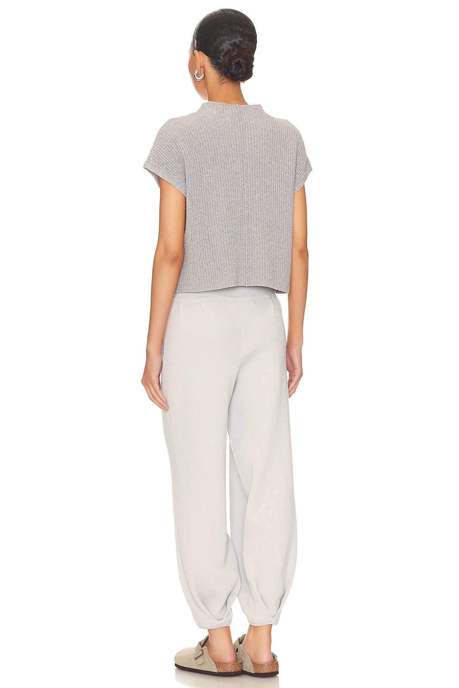 Loungewear doesn't have to be frumpy and this is exactly what we had in mind. Designed for a comfortable fit, this chic little number will be your favorite lounging-at-home look. This essential set features a knit top and coordinating tapered pants for the perfect wear-everywhere outfit. Top: Rib-knit fabrication. Funnel neckline. Front pouch pocket. Boxy fit. Pants: Pull-on design. Exaggerated pleating at top. Side pockets. Banded hemlines. free-est. Hand Wash Cold Separate. Import. Measurements for size small. Bust: 40 in. Top length: 19.5 in. Waist (relaxed): 25 in. Hips: 38.5 in. Rise: 12.125 in. Inseam: 27 in. Pants: 87% Polyester, 13% Linen. Pullover: 100% Cotton