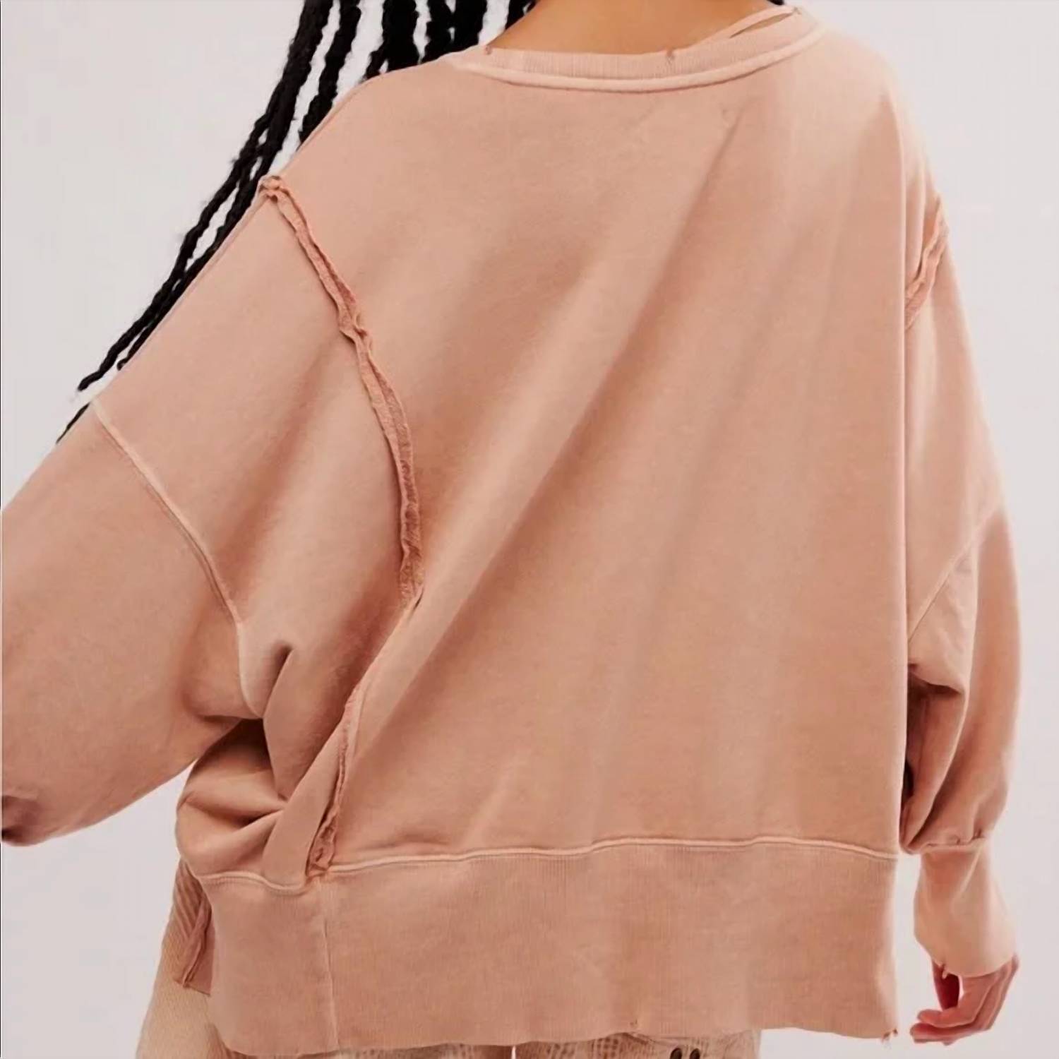 The Graphic Camden Sweatshirt by Free People is a versatile addition to any wardrobe with its slouchy, relaxed fit and varsity-inspired graphic. Featuring long sleeves, a scoop neckline, and dropped shoulders, this brown combo Amsterdam pullover is crafted from a cotton blend for ultimate comfort. Composition includes 49% polyester, 51% cotton with rib detailing of 100% cotton. Closure is a convenient pull-on style, and this sweatshirt is suitable for machine wash.