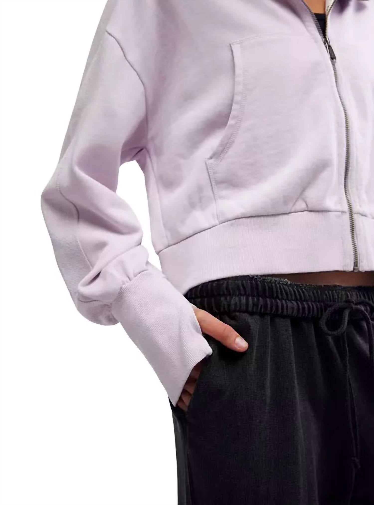 This utility jacket is the perfect combination of cool and feminine. Elevate your style with the High Jump Zip Up Jacket by Free People, crafted with a soft cotton-blend for ultimate comfort. This utility jacket features long sleeves with exaggerated cuffs and thumbhole detailing, and a full zip closure complemented by a ribbed collar for a chic look. The addition of two hand pockets and a relaxed, hip-length fit make it a practical yet fashionable choice. Composition: 80% Cotton, 20% Polyester. Enjoy the contrasting paneling and the signature embroidered buti logo that enhance its distinctive appeal.