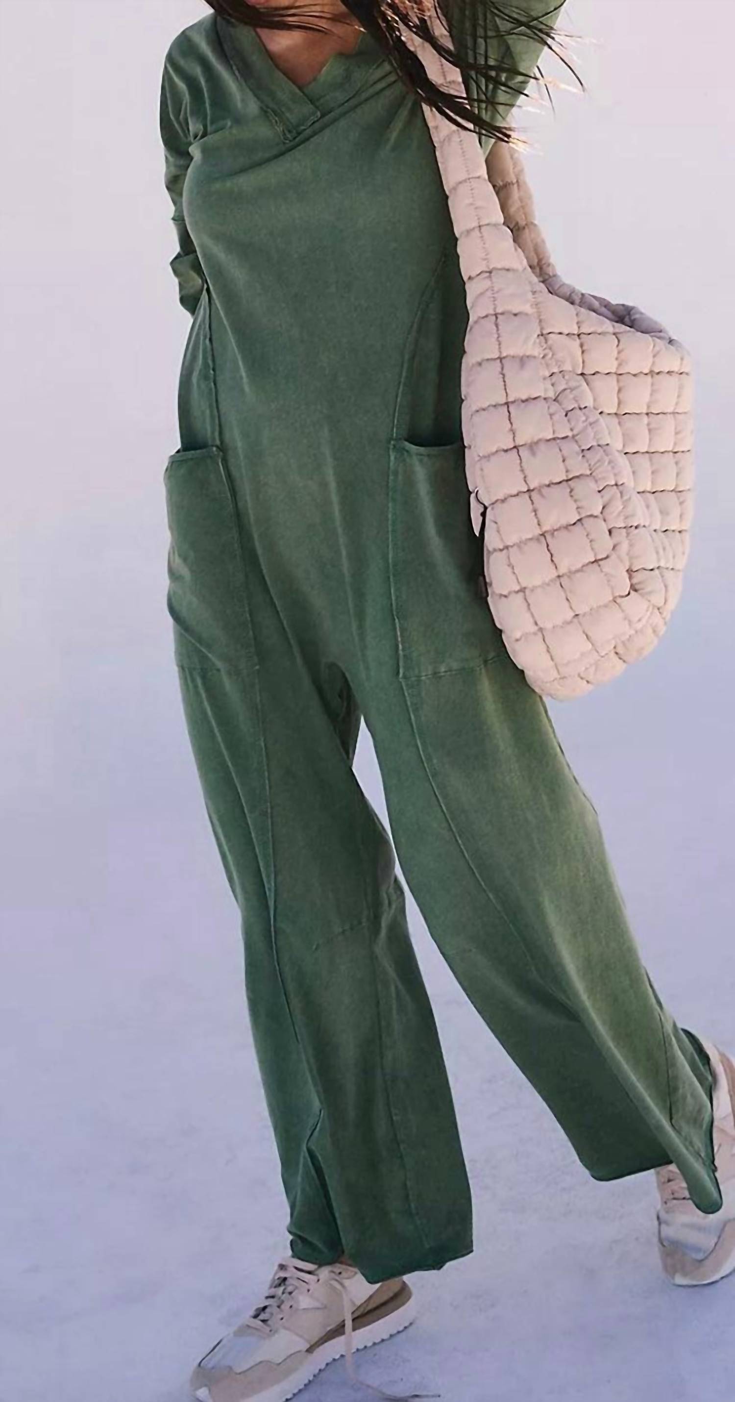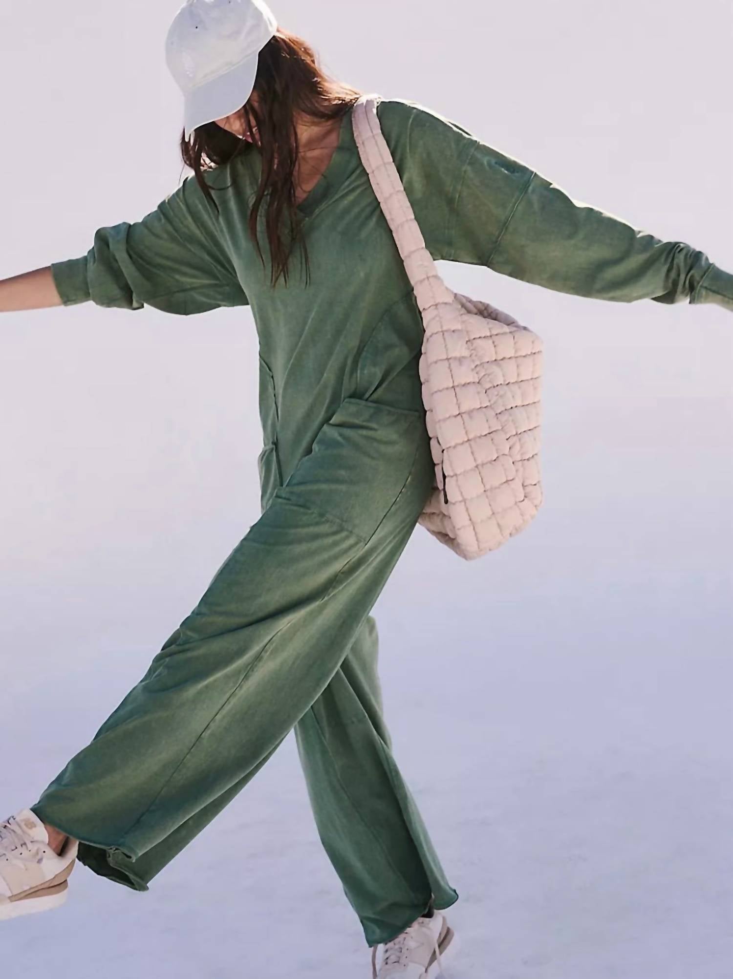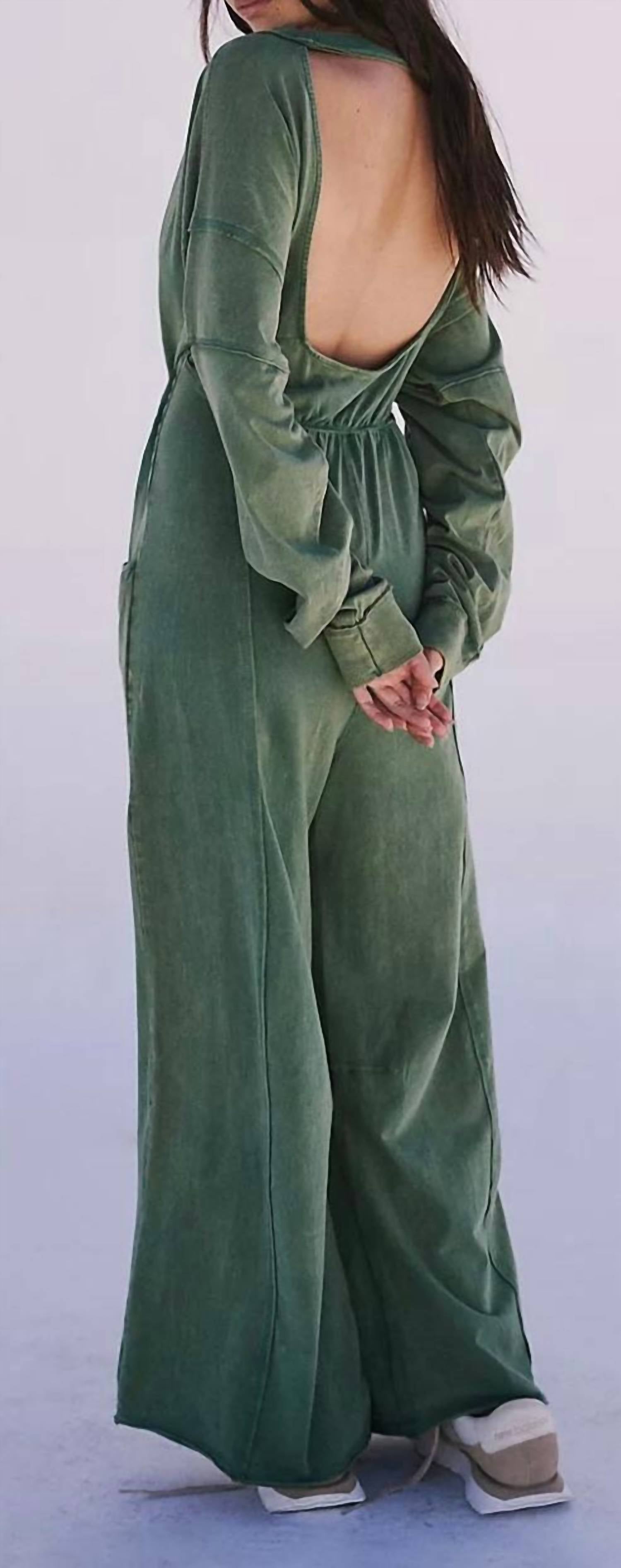 It doesn't take much for this one piece to look effortlessly cool. Add some statement jewelry to dress it up, or throw on some sneakers for a more casual vibe. Introducing the Hot Shot Runner One Piece by Free People, a stylish blend of comfort and flair from the Hot Shot collection. This women's jumpsuit in classic black features long drop-shoulder sleeves with cinched cuffs and a striking open-back detail. Crafted from a soft cotton blend for a slouchy, relaxed fit, it boasts wide full-length legs and oversized patch pockets for added convenience. Closure: Pull on. Care: Machine wash cold. Measurements for size small: 35" bust, 34" waist, 43" hips, 22.75" sleeve, 21" rise, 28" inseam.