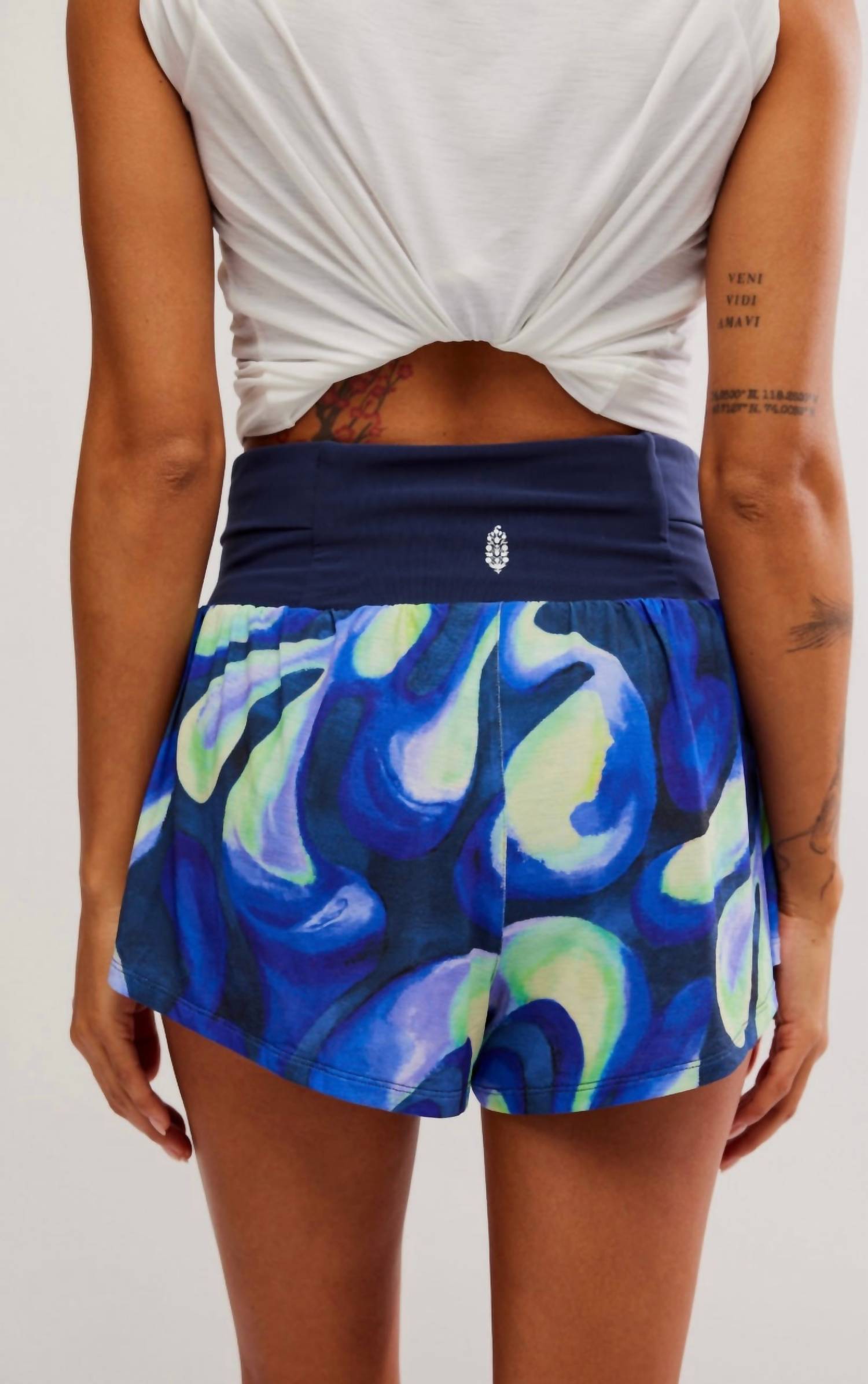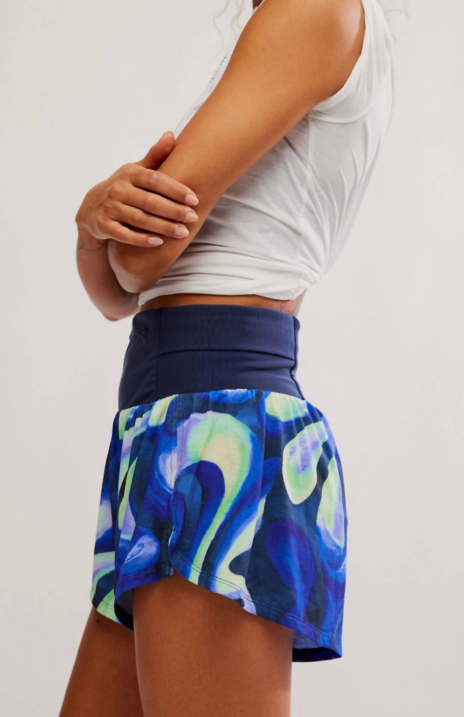 Athletic shorts that work for the gym or running errands! Introducing the Light As Air Printed Run Short by Free People in Grisaille Combo, designed for those who cherish movement and style. These athletic shorts are made from lightweight, breathable nylon and feature a trendy graphic pattern. The pull-on closure complements its high-rise, relaxed, shorty-length fit, perfect for warm-weather activities. Thoughtfully designed with a zippered waistband for small essentials and secure side pockets, these shorts offer functionality and fashion. Care instructions: Machine wash cold.