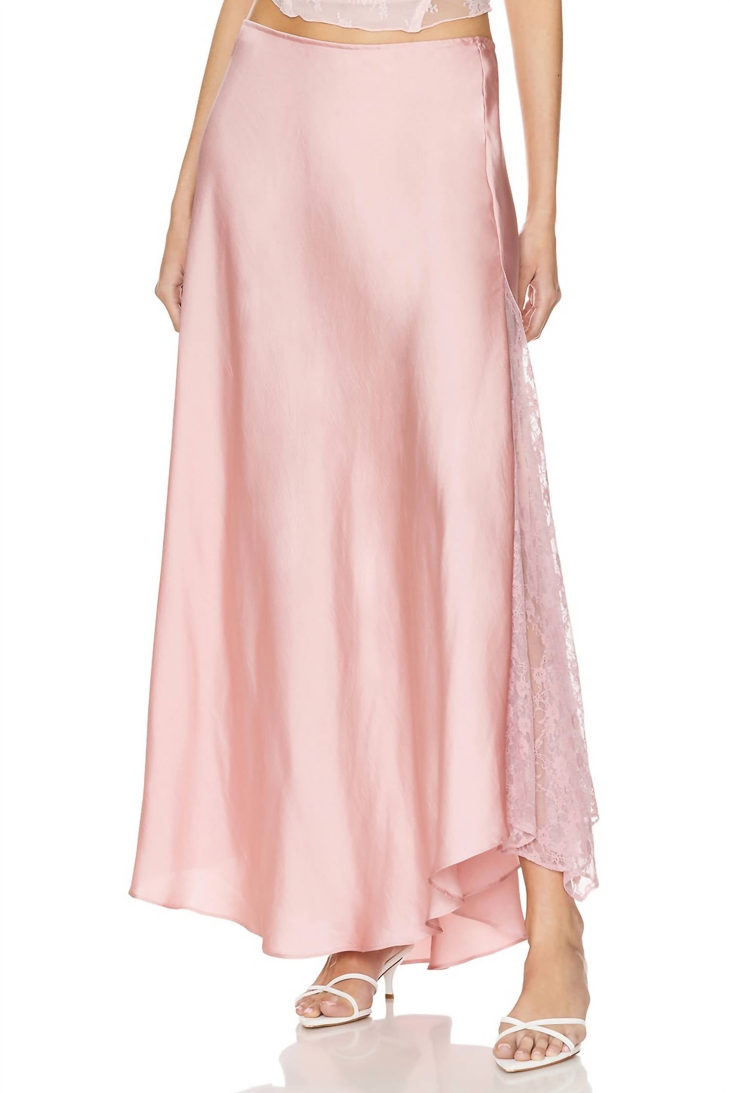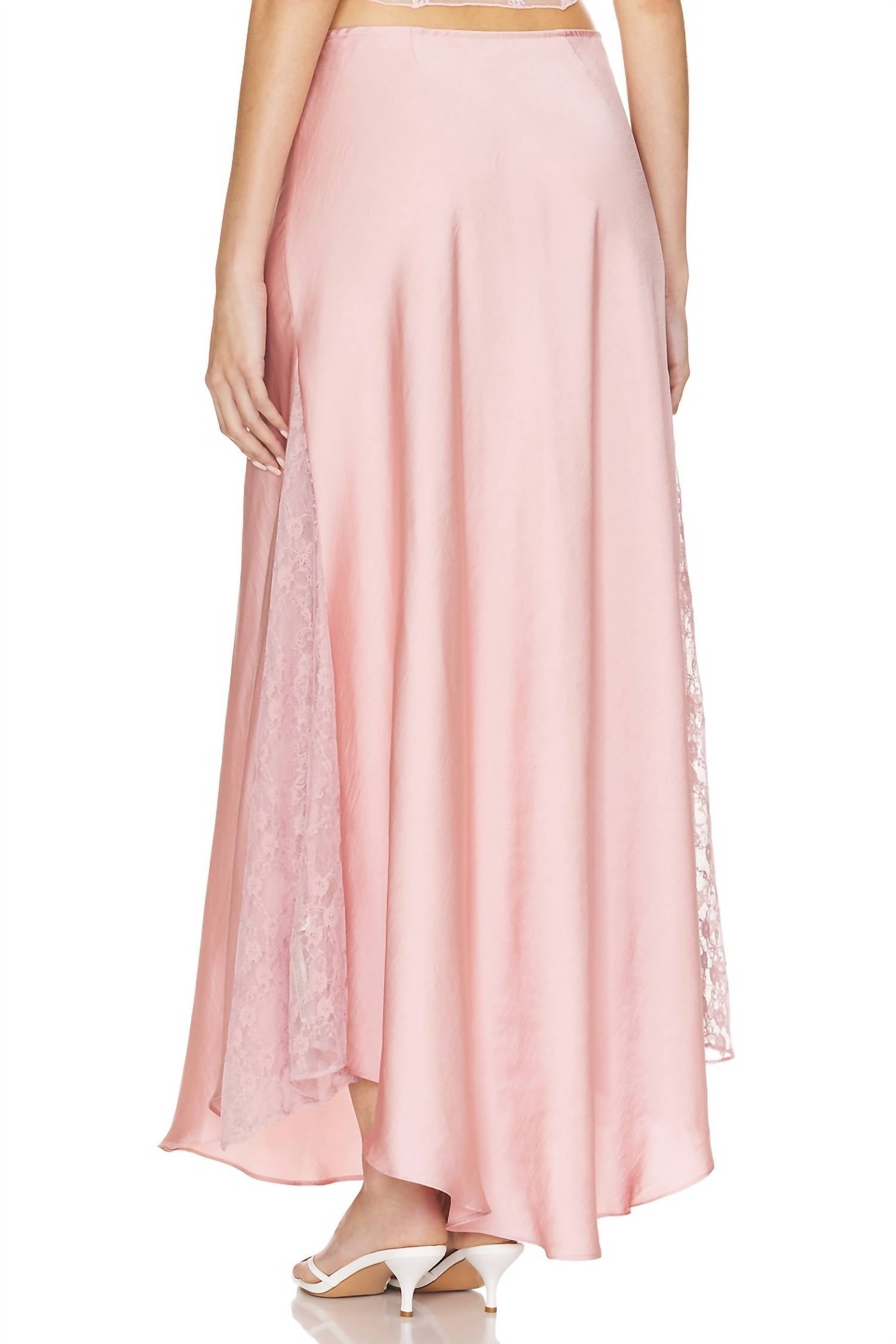 Elevate your wardrobe with the Make You Mine Half Slip Skirt by Free People, exquisitely crafted in a satiny polyester for a luxurious touch. This pale mauve midi skirt boasts a shapeless, relaxed fit with a mid-rise, pull-on style, making it both elegant and comfortable. Delicate lace paneling at the sides and subtle godet pleating add dimension and flow to the silhouette. Care instructions: Hand wash.