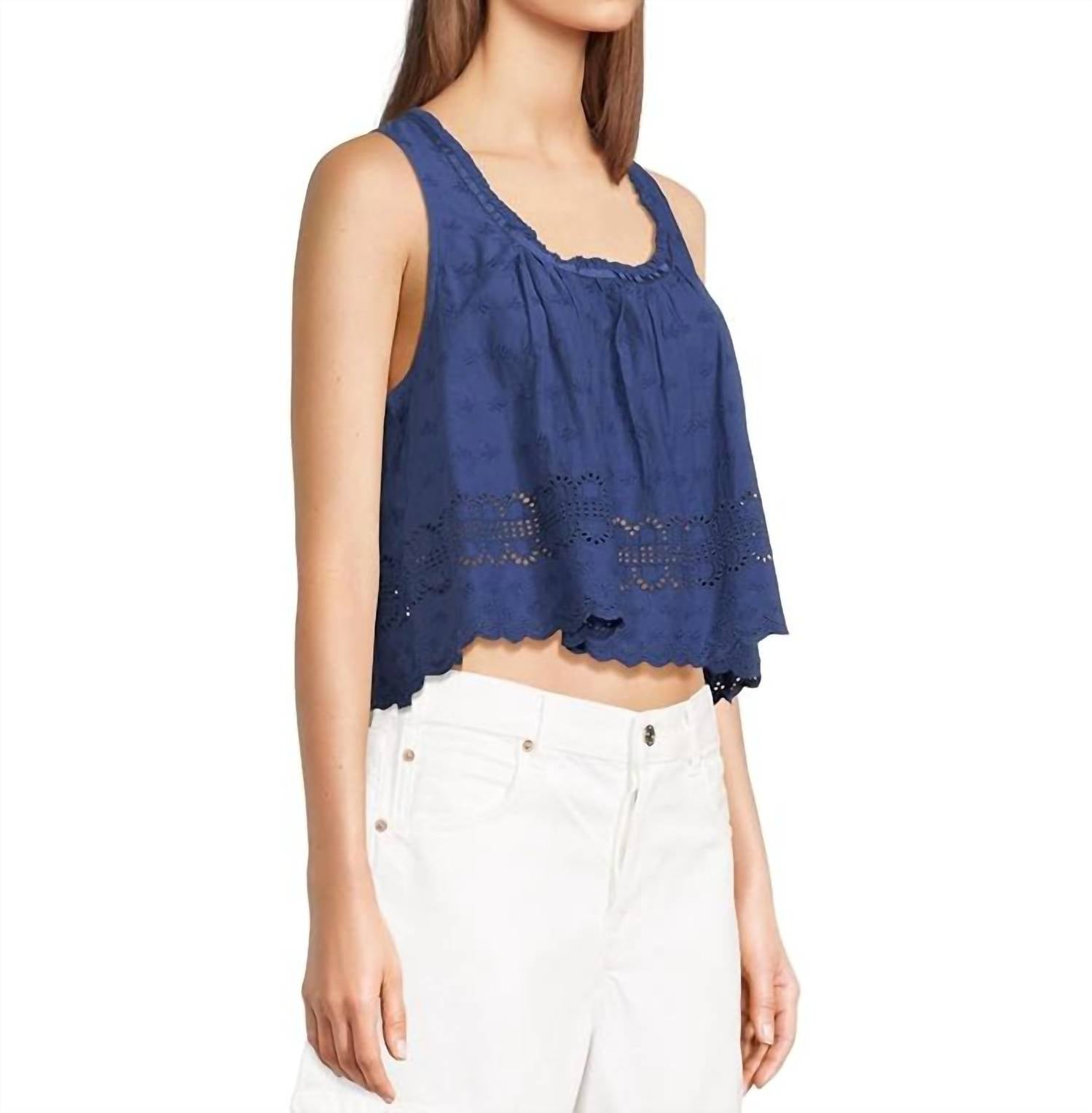 The perfect tank top for those warmer weather seasons. Elevate your wardrobe with the Marina Eyelet Tank by Free People, perfect for adding a textured touch to your collection. Designed in a striking Bellweather Blue, this sleeveless tank offers a timeless scoopneck for versatile styling. Crafted from 100% cotton, its breathable fabric ensures comfort in warm weather. Closure: Pull-on style. Care: Machine wash for easy maintenance.
