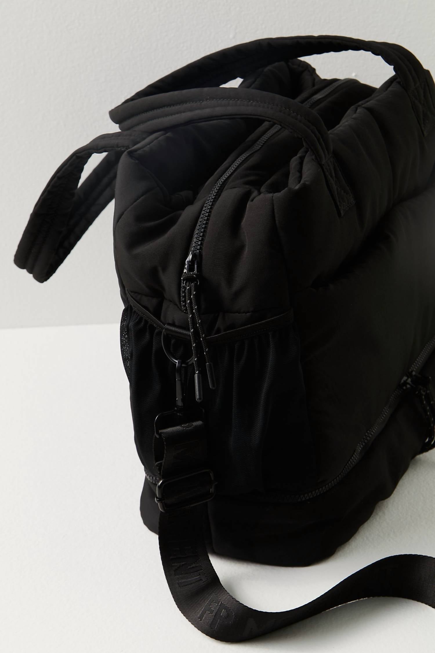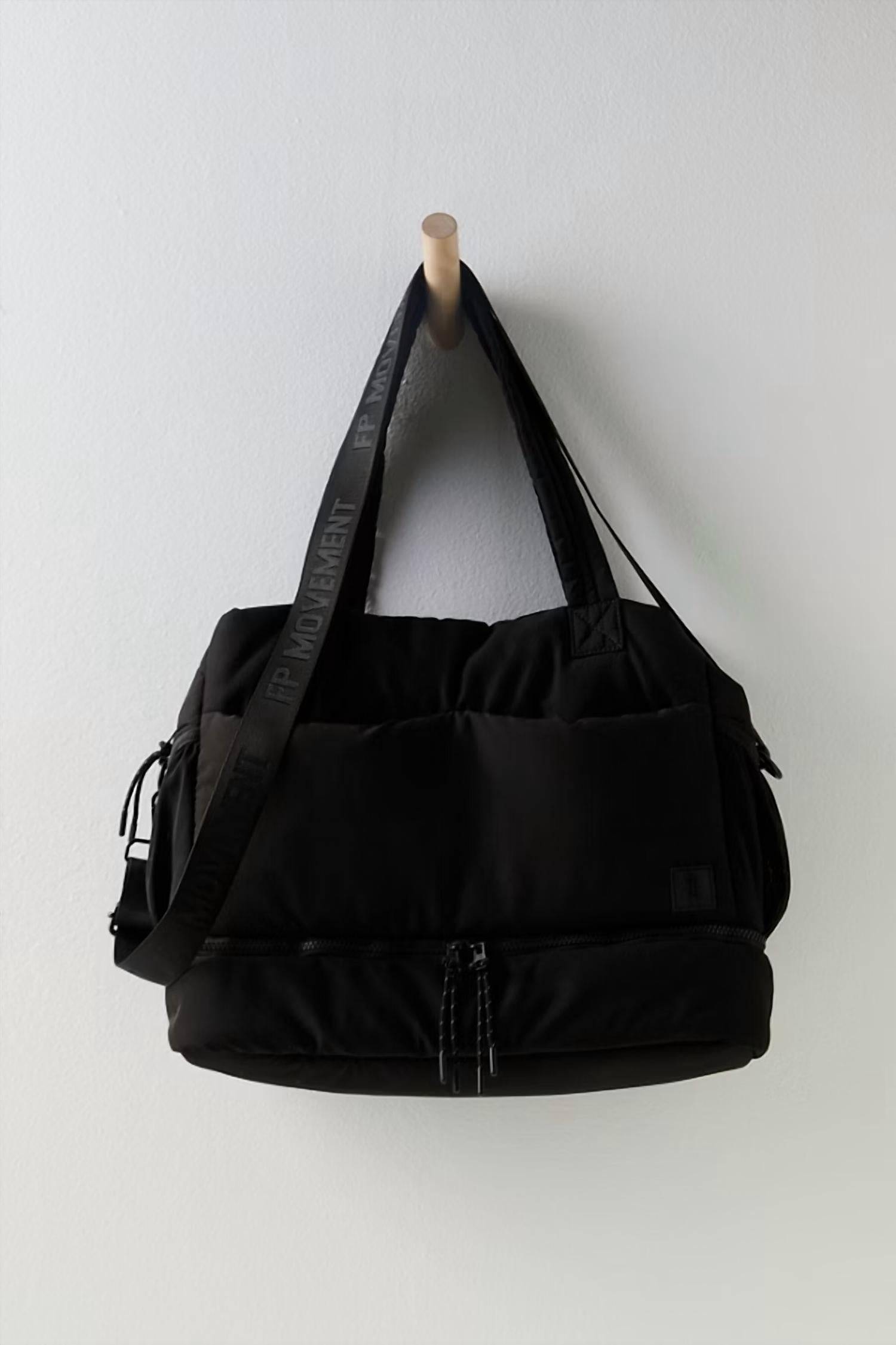 The travel bag you need for your next adventure. Perfect in size, this bag not only holds everything you need, but its stand-out style will be having you want to book your next vacation. Meet the MVP Duffle by Free People, your ideal companion for active lifestyles and beyond. Crafted from sporty ripstop polyester, this versatile bag features three outer pockets, two side pockets, and an interior slip pocket for optimal organization. The duffle includes a zipper under compartment and is equipped with top handles and an adjustable, detachable shoulder strap for easy carrying. Dimensions: 16.14" width, 6" depth, 13" height, perfect for storing your workout essentials or a change of clothes.