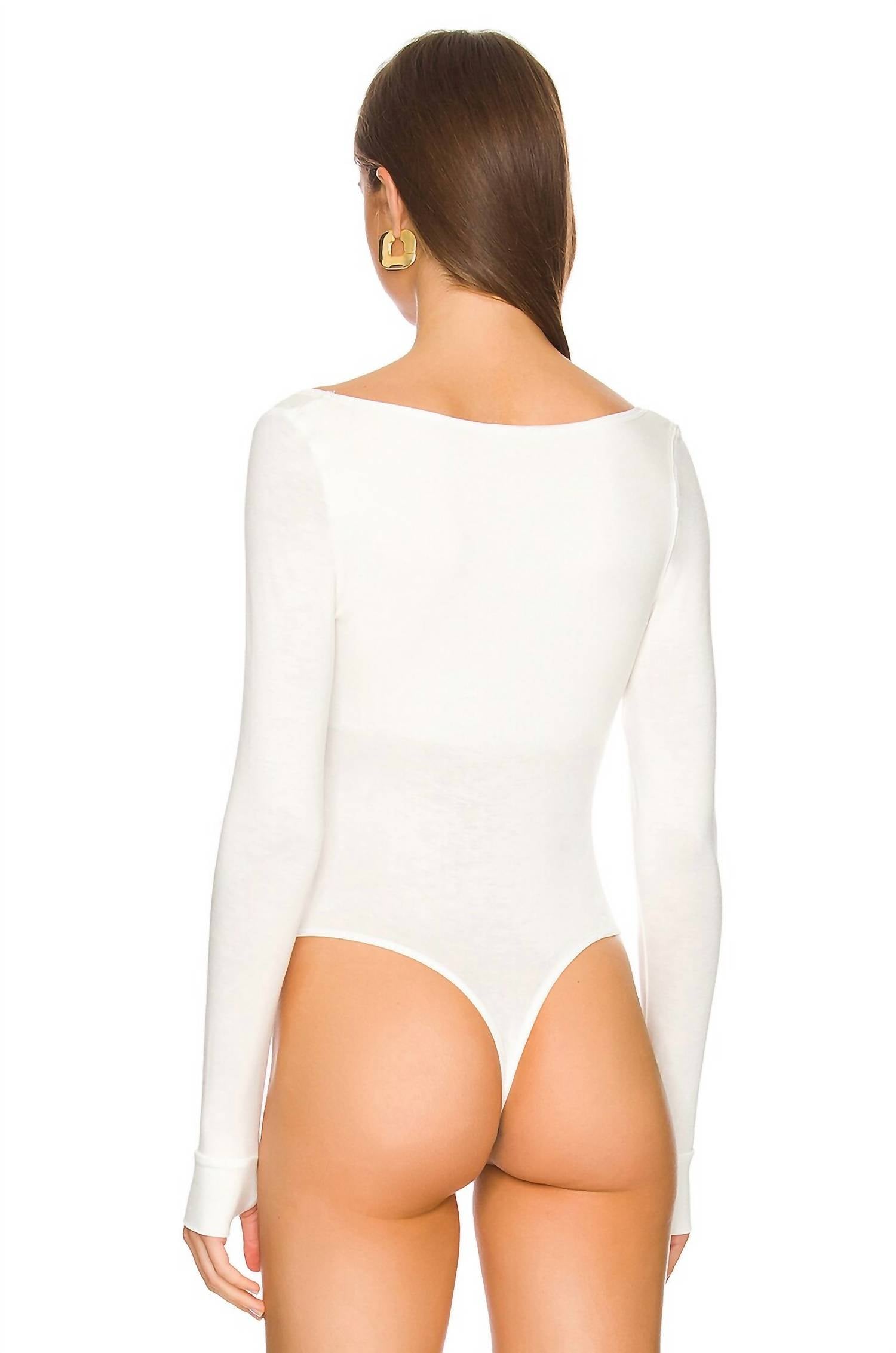 Pair this number with your favorite high-waisted jeans. This bodysuit features a flattering squraneck and long sleeves, crafted from a comfortable cotton blend. It secures with a convenient snap closure. Care is simple with machine wash instructions. Made in the USA.