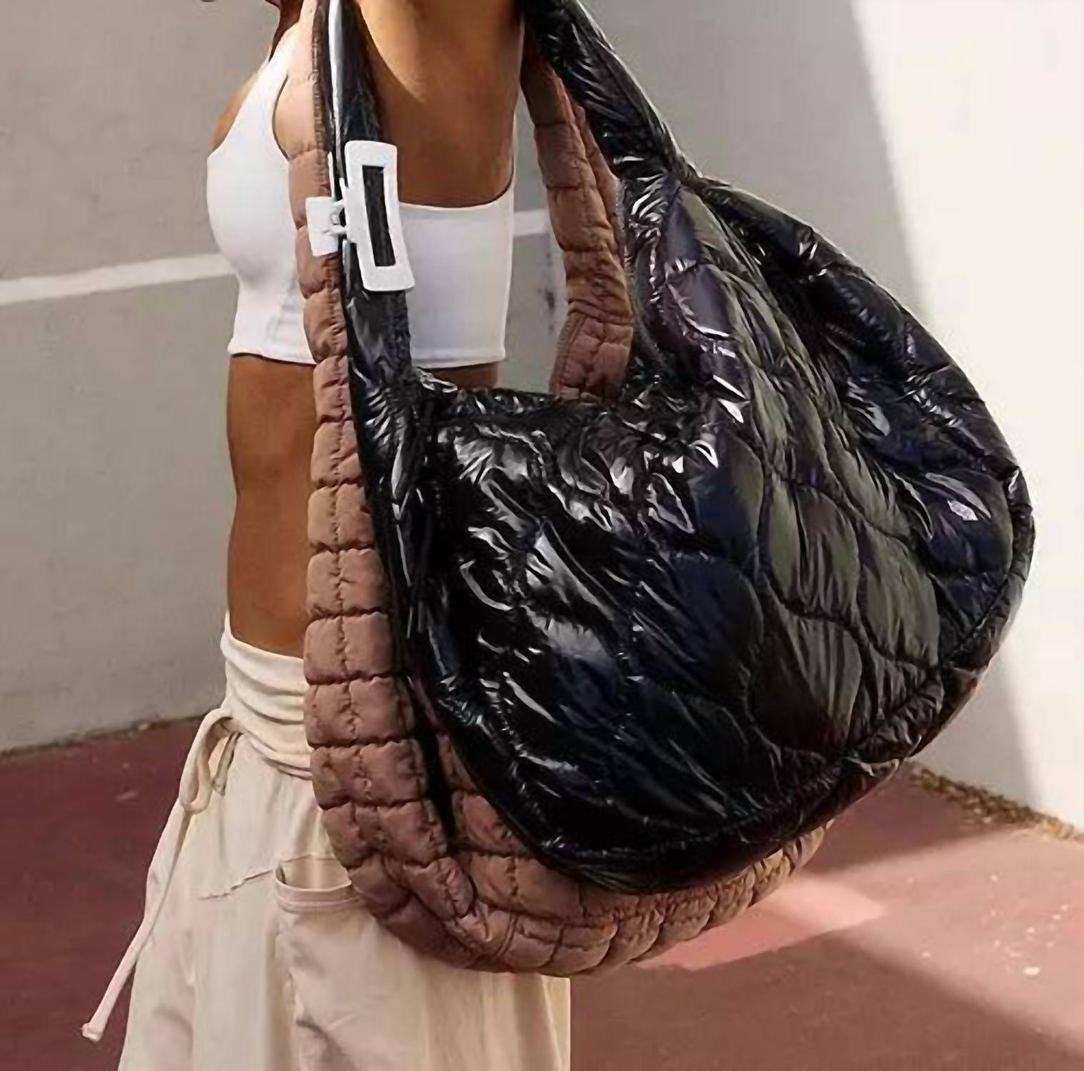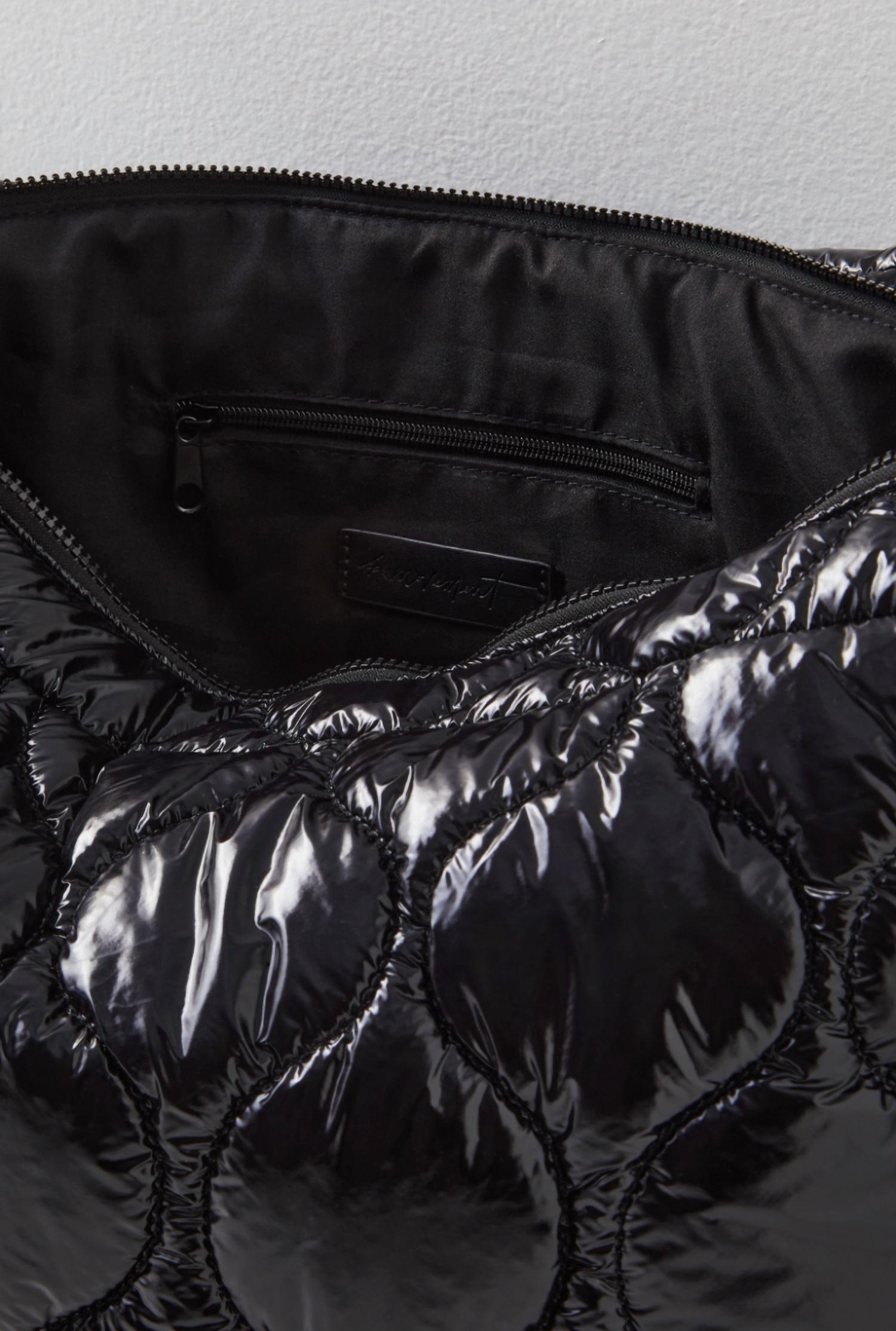 The carry-all tote bag of the season. Get in vacation mode with this perfectly sized tote bag that is the perfect accessory for beach days, pool parties, or sunset dinners. Elevate your essentials with the Surplus Shine Carryall Tote Bag by Free People, in a stunning Nutshell color. This oversized tote is crafted from 100% nylon, featuring a quilted shiny fabrication that adds a special touch to your ensemble. The bag boasts a zip top closure with tassel-adorned zippers, a fully lined interior, and an interior zip pocket for convenience. Made for versatility, this carryall tote effortlessly transitions from fashion to fitness.