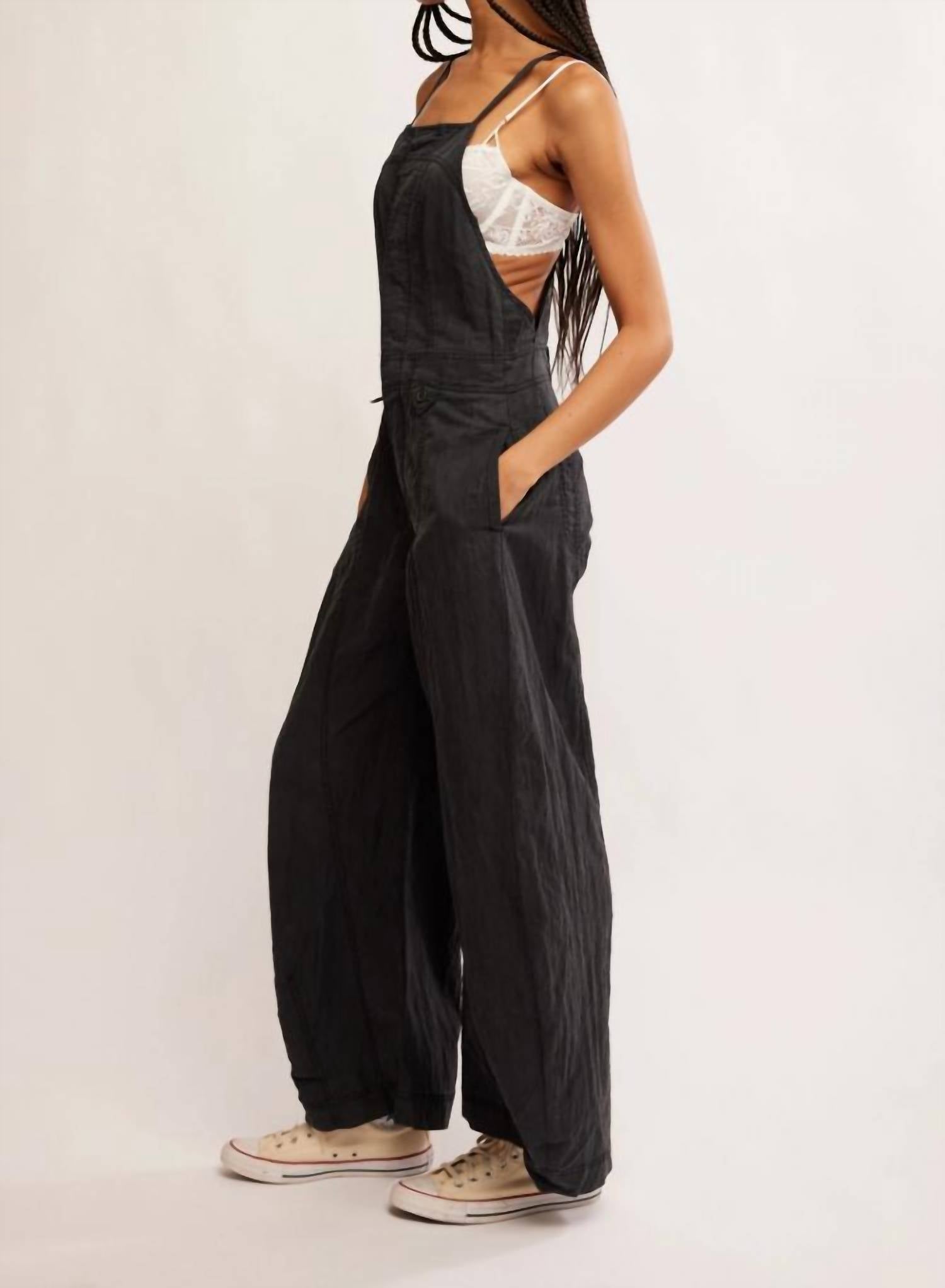 It doesn't take much for this one piece to look effortlessly cool. Add some statement jewelry to dress it up, or throw on some sneakers for a more casual vibe. Step into effortless style with Free People's Sylvia Barrel One-Piece, a utility-inspired jumpsuit for the modern woman. Crafted from a blend of 89% Lyocell and 11% Nylon, this black jumpsuit features a relaxed fit through the bodice, complemented by a wide barrel leg design. The adjustable brace straps and front-covered button closure offer a customizable fit, while functional side pockets and utility seaming add convenience and style. Care for this piece is a breeze with machine wash cold gentle instructions.