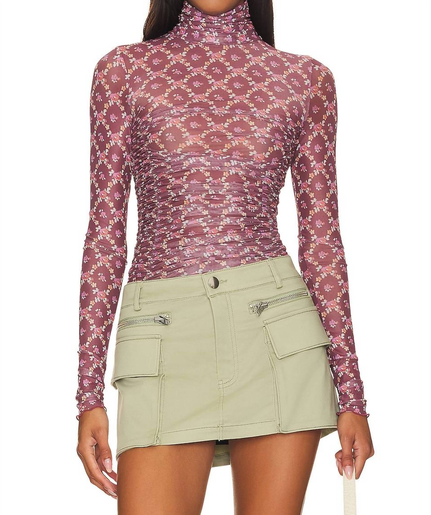 Who doesn't love a good bodysuit? Discover the elegance of the Free People Under It All Bodysuit in a charming Garnet Combo floral pattern. This piece boasts long sleeves and a sophisticated turtleneck, featuring a sheer mesh composition with delicate ruched detailing. Closure: Snap closure with a thong back for comfort and allure. Care: Hand wash and lay flat to dry. Please note that the semi-sheer fabric may show undergarments.
