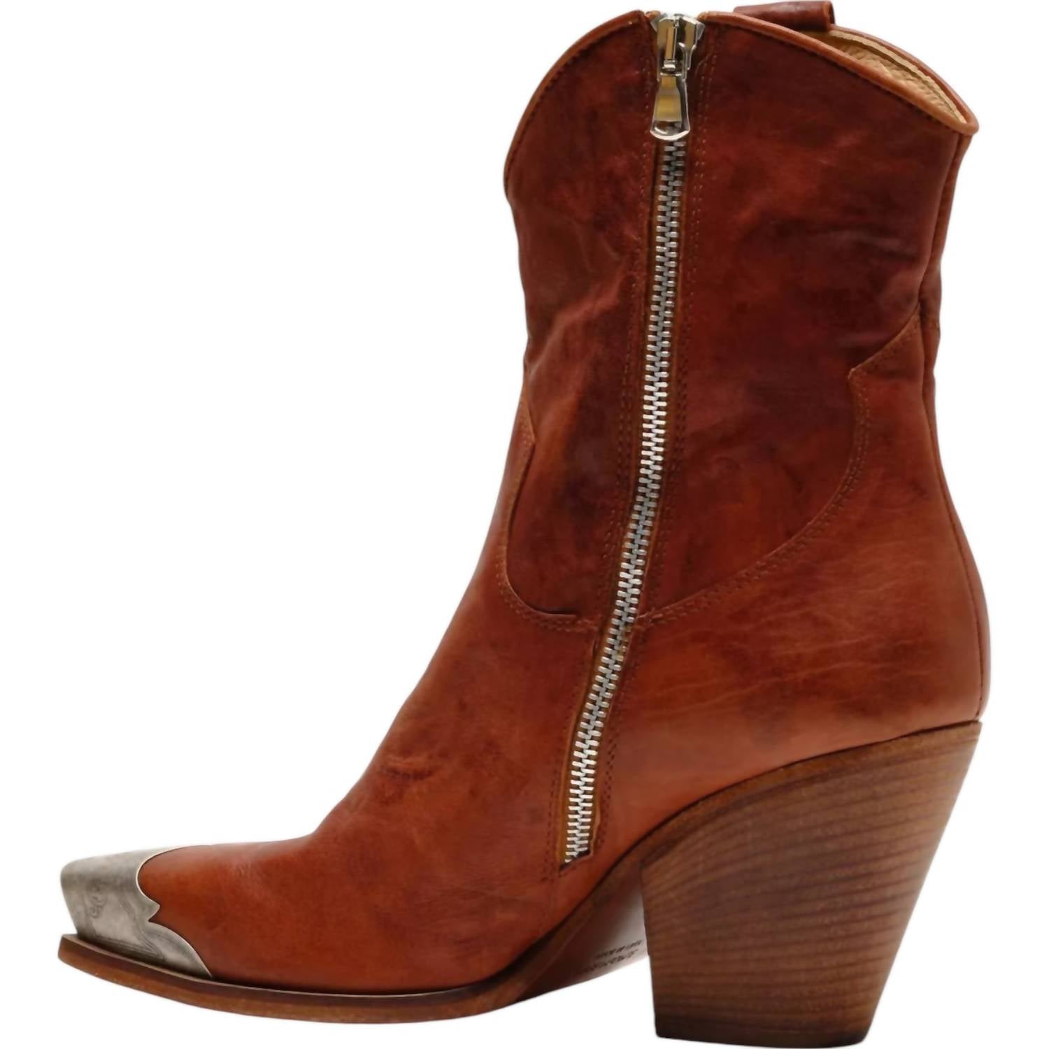 Say hello to the perfect, most versatile boot. The ankle height makes this style easily transition from day to night. Wear them with your favorite skinny jeans and tee for a more laid back look, or pair them with your favorite mini dress and jacket for a night out on the town. Step into effortless style with the Women's Brayden Western Boots by Free People, crafted from premium leather in a striking Sunbaked Brown hue. These ankle boots feature a squared toe and a distinctive block heel, perfect for adding a touch of western chic to any outfit. Elevate your footwear collection with this classic silhouette designed for women.